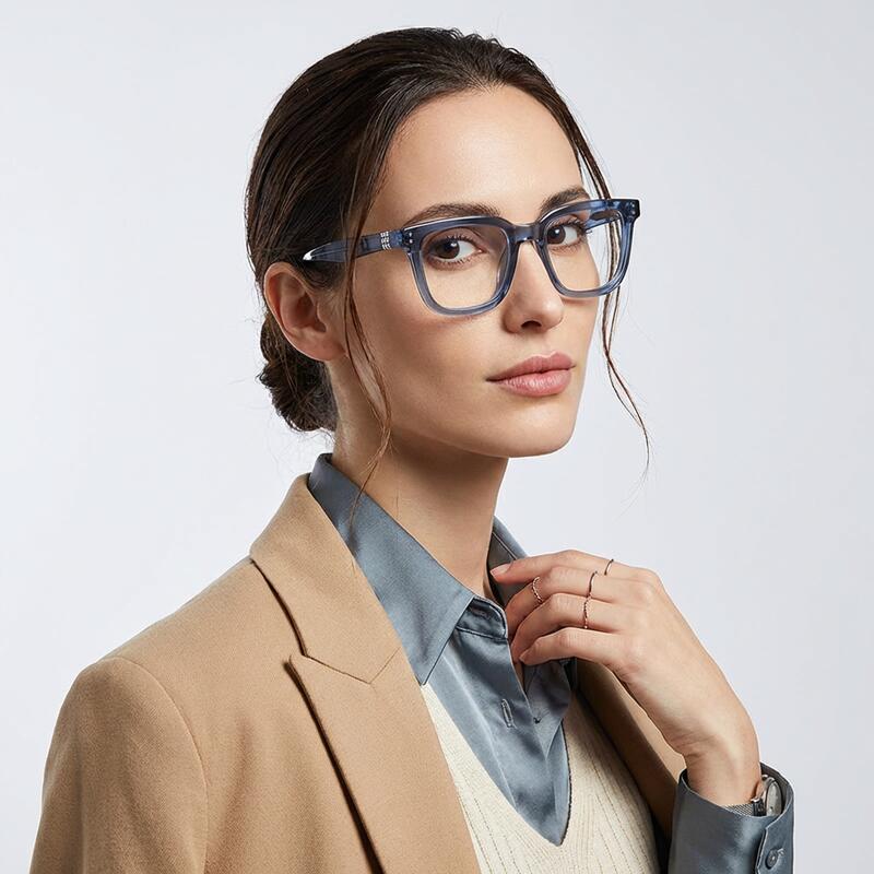 With these sleek square frames. Their uncluttered design and precise geometric form embody contemporary elegance, making them ideal for those who appreciate clean lines and a refined aesthetic. These glasses provide clear vision, allowing your natural features to shine through without distraction. Perfect for a streamlined wardrobe, they deliver a sharp, polished look that speaks volumes about thoughtful design and effortless style.